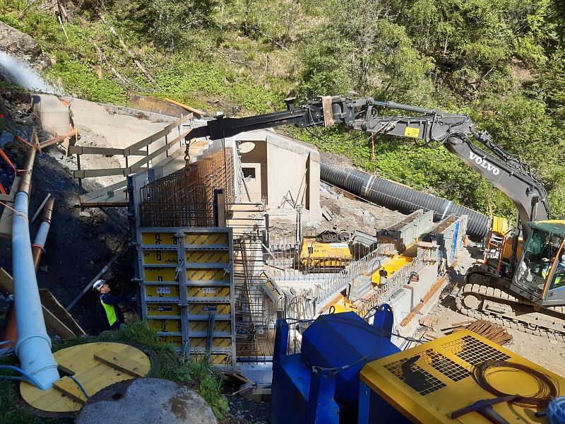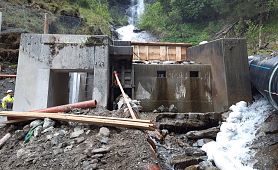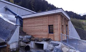 | Leistungsdaten | Im Auftrag der ASFINAG wurde ein Kleinwasserkraftwerk in Flirsch erbaut: 524 m DN350 GJS Druckrohrleitung ZMU 466 m DN200 GJS Druckrohrleitung ZMU 60 m DN250 GJS Druckrohrleitung 190 m³ Felsabtrag 1.056 m² Asphalt + Unterbau im steilen Gelände 250m > 30% 3.988 m² Oberboden / Waldboden 156 m³ umbauter Raum Maschinenhaus 223 m³ umbauter Raum Entnahmebauwerk 1.220 m Energiekabel 4x240mm² DN60 1.220 m Energiekabel 1x120mm² DN60 1.720 m LWL Rohr DN50 331 m³ Beton 24 to Stahl 2-düsige Peltonturbine mit Synchrongenerator, 150 kW Steuerung und Regelungstechnik, Vollautomatisierung 4 Stk Schieber + Antriebe 1 Stk Regelschieber für RW Abgabe 5 to Stahlbauarbeiten (Geländer, Panzerungen, etc.) |
