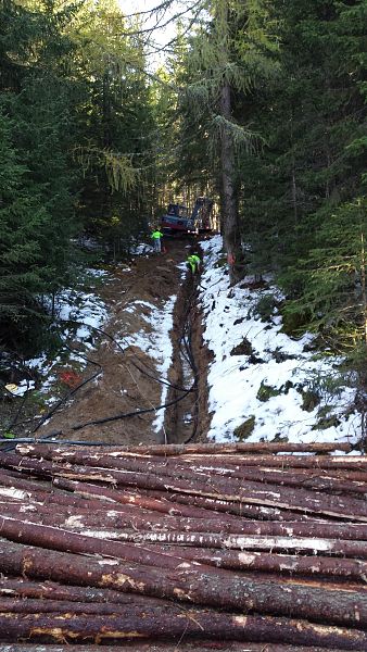 | Leistungsdaten | Verlegung Fernmeldekabel 2.300m Verlegung Niederspannungskabel 2.500m Verlegung LWL 4.600m Trassenführung über steiles Waldgelände |